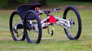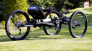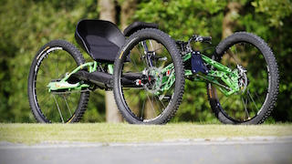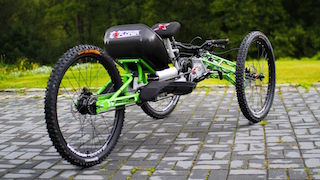 The Explorer III Off-Road Handcycle is a unique handcycle designed to tackle extreme off-road conditions and provide unparalleled opportunities to get up close and personal with places that until now have been inaccessable. Places like mountains, trails and the beach are no longer out of bounds, the Explorer Off-Road Handcycle will take you there and to the top. This unique off-road handcycle has already taken many users to the highest peaks of Europe, including the Alps and the Tatra mountains. The Explorer also took part in a successful climbing expedition to Mount Killimanjaro - the highest peak of Africa. The Explorer III is the most advanced off-road handcycle of it’s kind with features such as full independent suspension, hydraulic disc brakes all round, Schlumph Mountain Drive and a choice of drivetrain ranging from 16-22 gears. One of the great features of the Explorer is the chest steering used to keep the bike in a straight line or negotiate turns when pedaling. The handlebars are there for flying downhill.